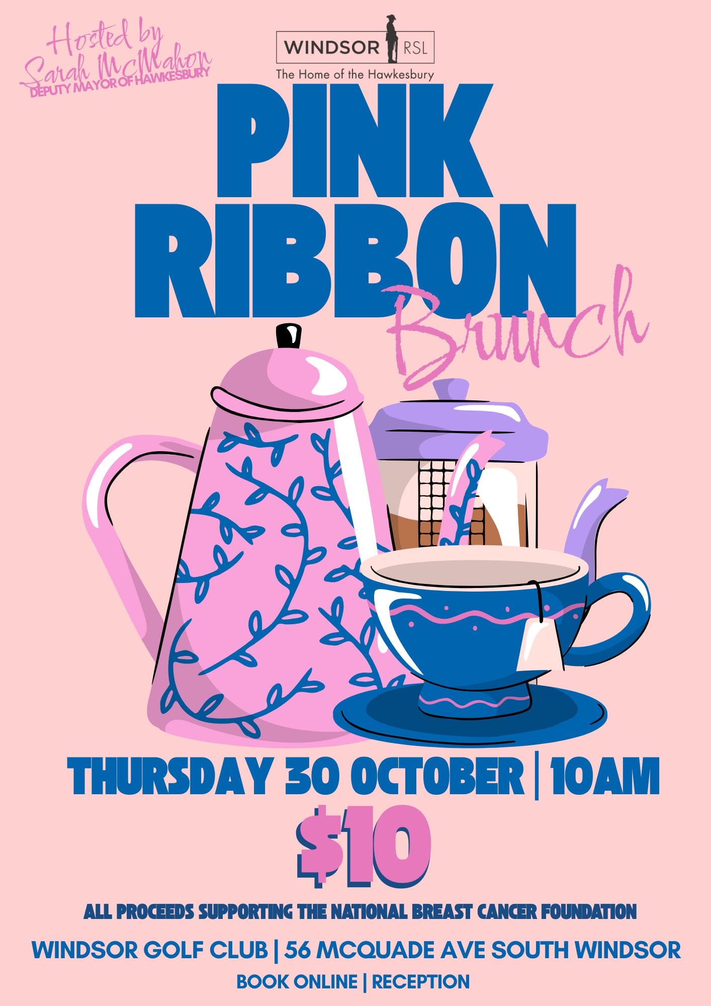 Windsor Golf Club will host a special Pink Ribbon Brunch on Thursday, 30th October from 10am to 12pm, inviting locals to come together for conversation, connection, and a meaningful cause — supporting the National Breast Cancer Foundation.