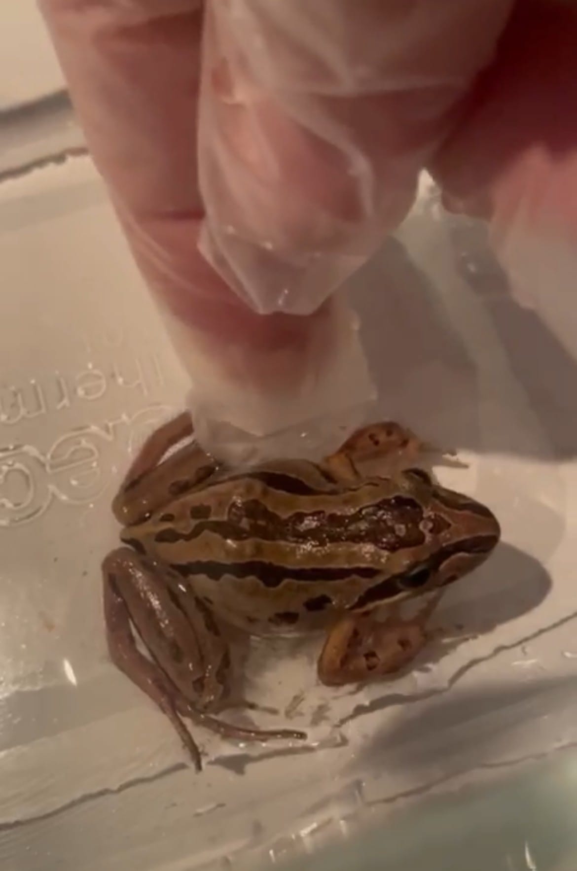 Next, grab a clean container with a lid for your froggy patient’s temporary hospital stay. A shallow glass bowl is perfect, letting you keep an eye on them and sneak a peek at their tummy without causing any drama.