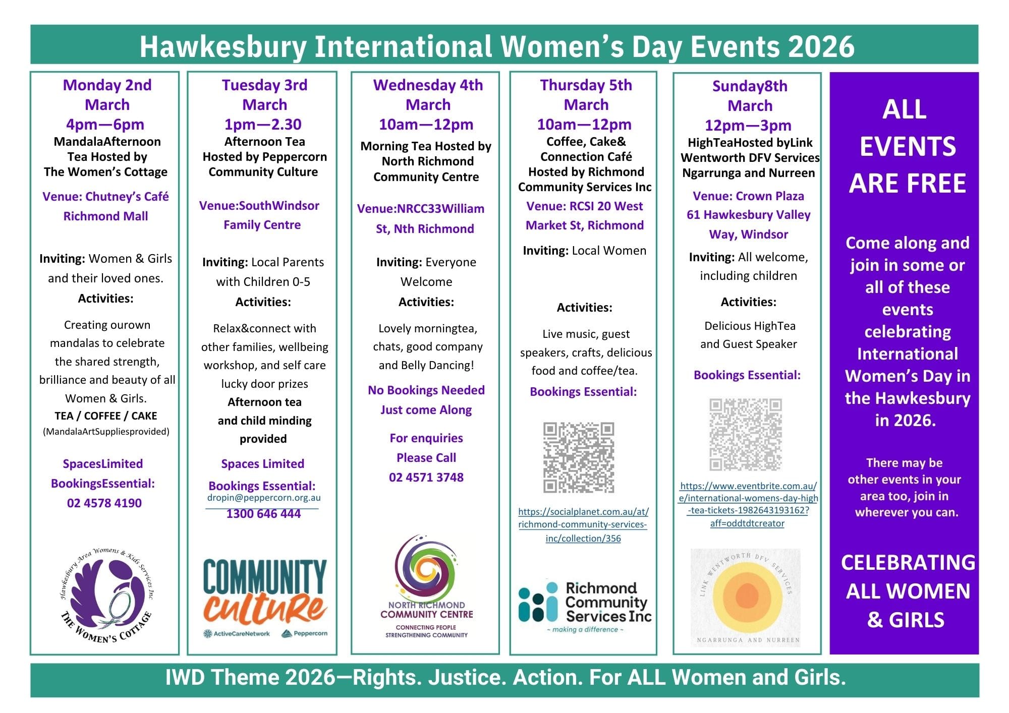 Locally, a series of free community events will run from Monday 2 March through to International Women’s Day on Sunday 8 March, offering opportunities for connection, reflection and celebration.