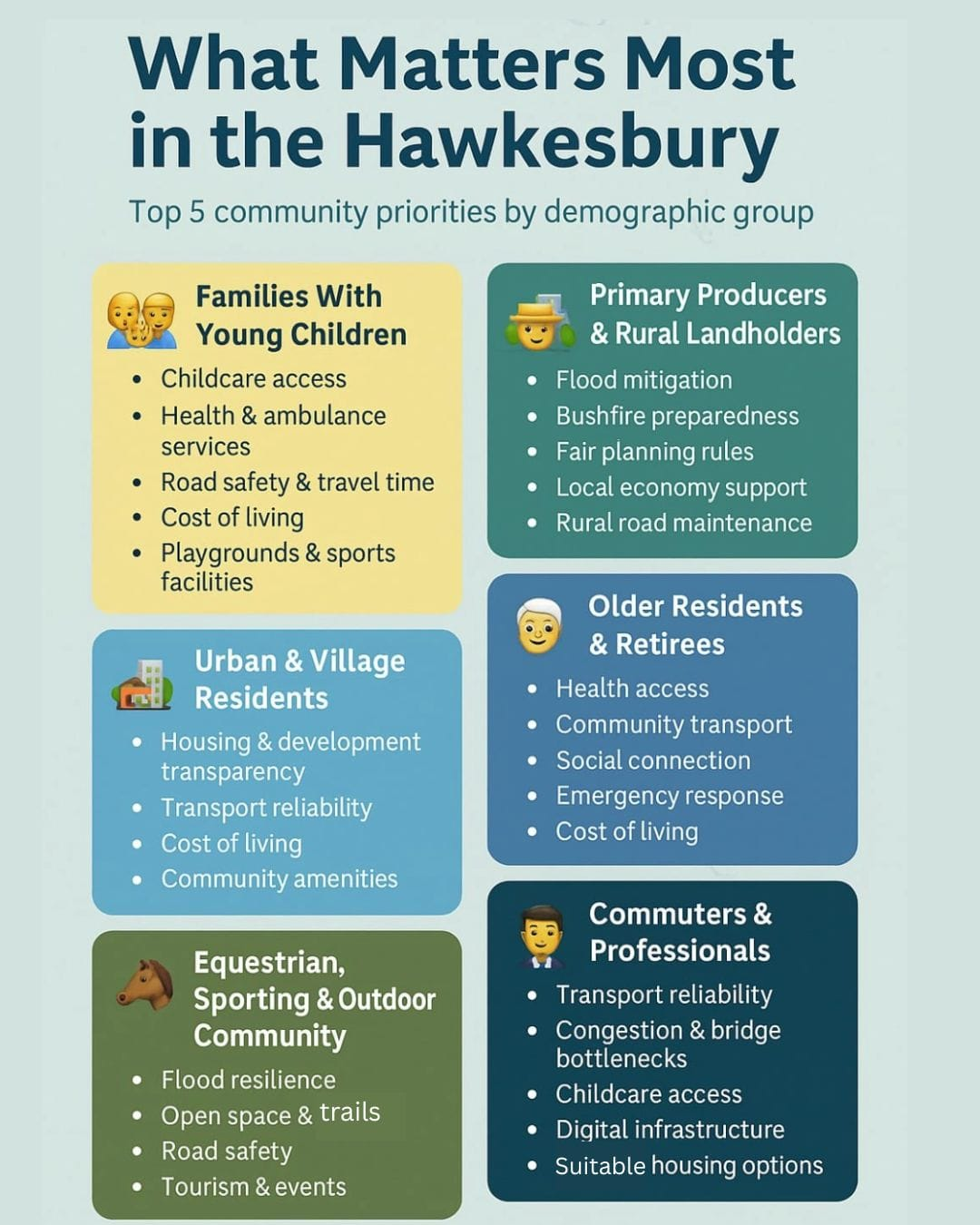 Political parties are given public money to run their organisations, develop policies, and hold monthly meetings where, in theory, they discuss how to make life better for the community. So we thought we’d ask the obvious question: “What exactly are you working on for the Hawkesbury?”