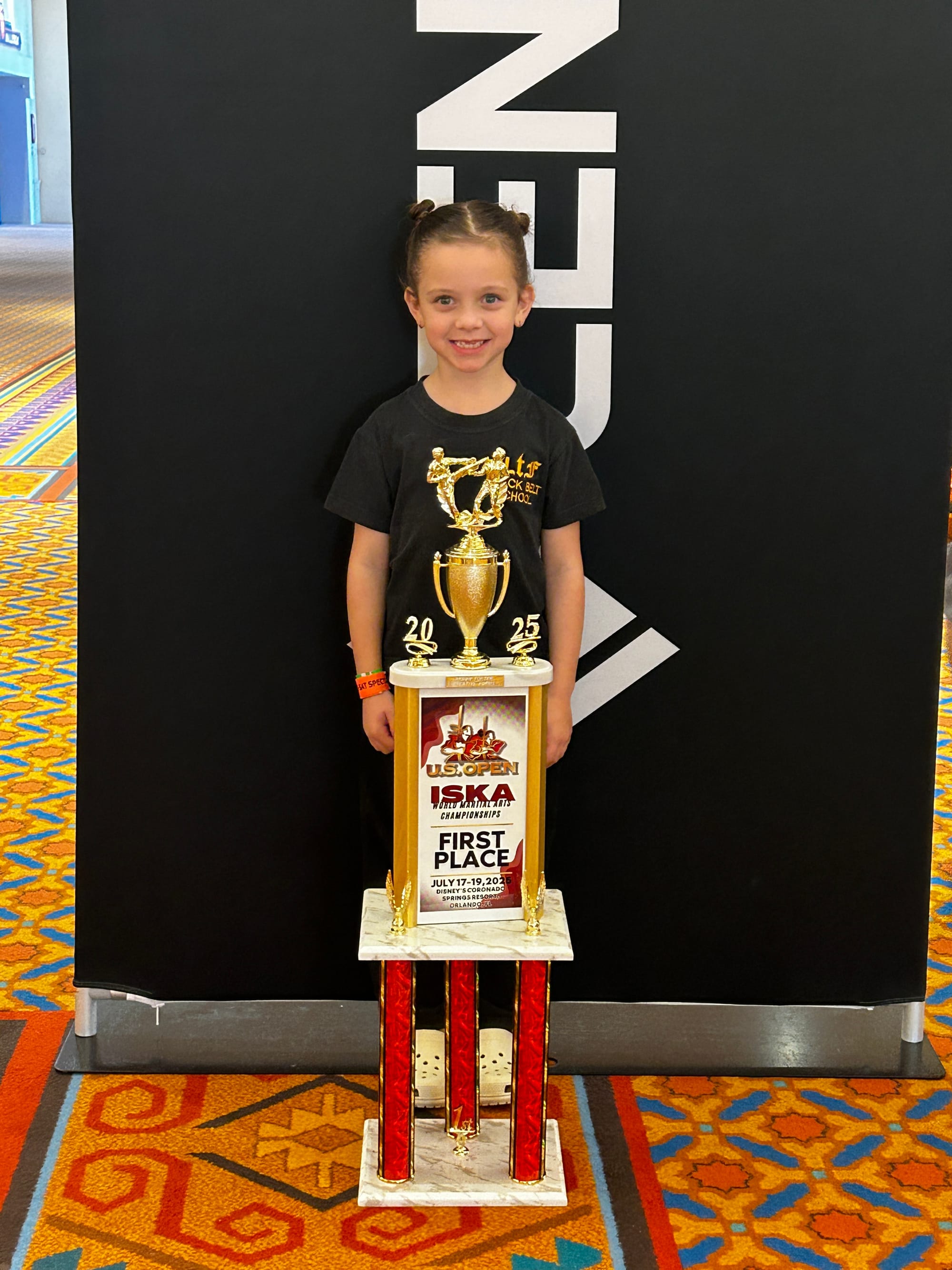 Arrow then competed in the prestigious Night of Victory, a televised event featuring the best underbelt competitors aged nine and under. At just seven years old, she delivered a commanding performance and won the Grand Champion title. According to event organisers, Arrow is the youngest female Grand Champion in the five-year history of the ISKA US Open and may be the only female to ever achieve the title.